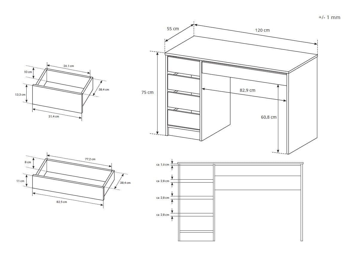 - Cztery szuflady z boku oraz jedna pod blatem,
