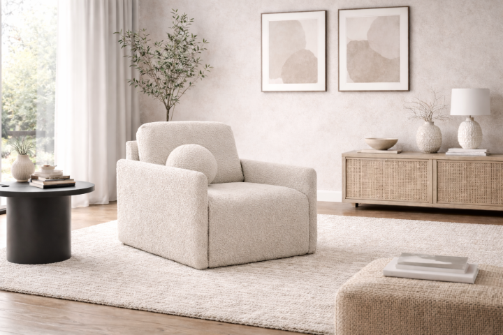 ABRIAMO - tkanina tapicerska która daje nieograniczone możliwości zastosowania, łączy w sobie designerski wygląd z niezwykłą funkcjonalnością, bardzo miła w dotyku. Powierzchnia materiału daje wizualne wrażenie trójwymiarowości dzięki niesymetrycznemu specyficznie skręconemu splocie przędzy. Materiał tapicerski Abriamo boucle został wykonany z recyklingu. Tkanina meblowa jest odporna na działania światła słonecznego dlatego idealnie sprawdza się na meblach tapicerowanych, sofach, fotelach, tapczanach, pufach jak i na poduszkach, narzutach.