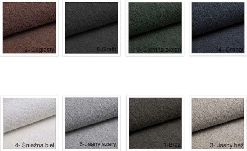 Podczas dokonywania zakupu prosimy o wybór materiału z którego ma zostać wykonany mebel. Próbniki znajdują się poniżej.