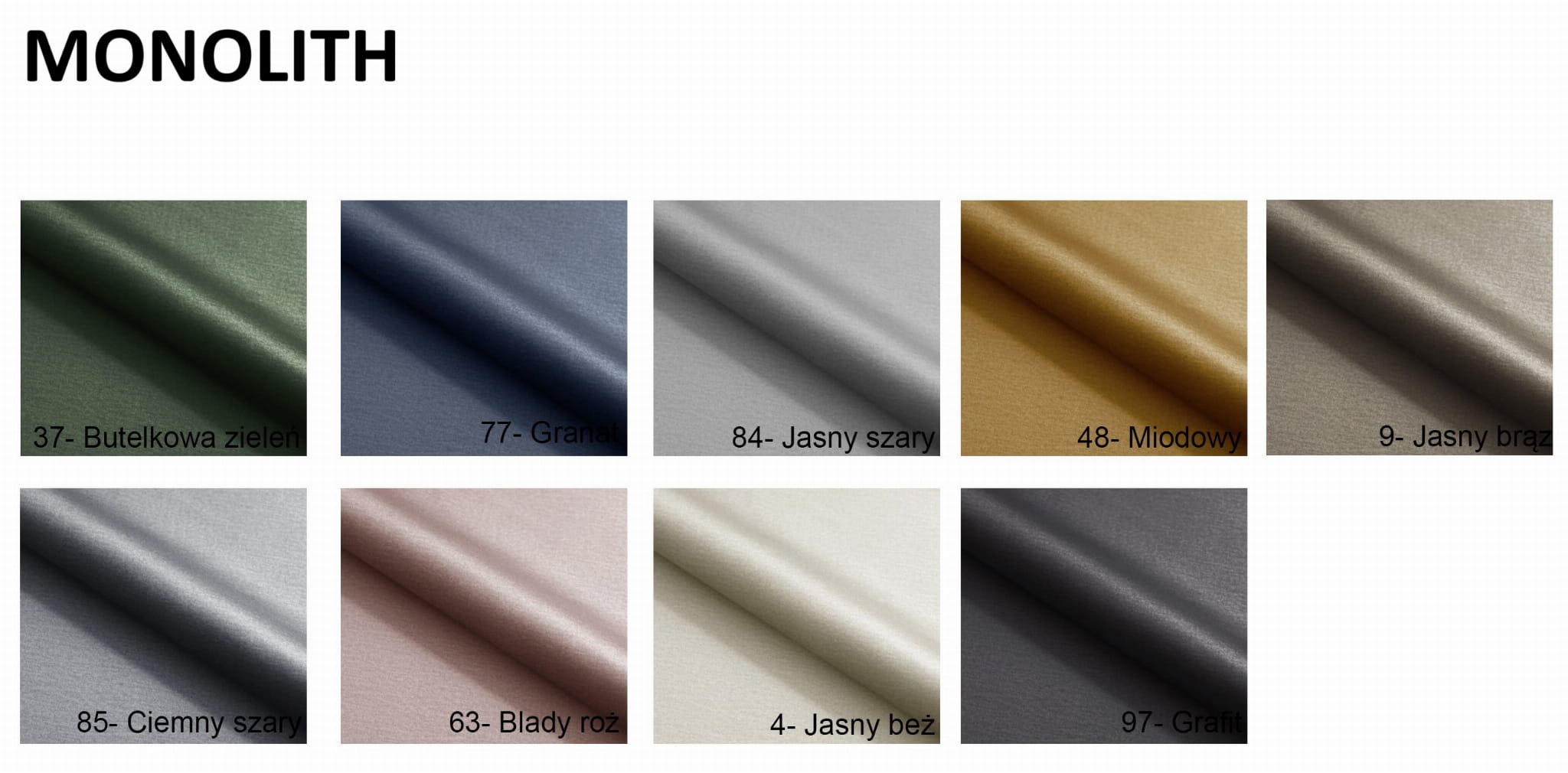MONOLITH To pluszowa velvetowa tkanina, która jest pokryta specjalną warstwą ochronną - POWŁOKĄ HYDROFOBOWĄ, która zabezpiecza przed szybkim przesiąkaniem płynów dzięki czemu zapobiega absorbowaniu wody przez tkaninę co daje efekt skraplającej się cieczy na powierzchni materiału - Mamy dzięki temu czas na odsączenie wody za pomocą ściereczki czy ręcznika papierowego. MONOLITH jest tkaniną SMART o eleganckim wyglądzie, wysokiej jakości, a dodatkowo ECO-FRENDLY.