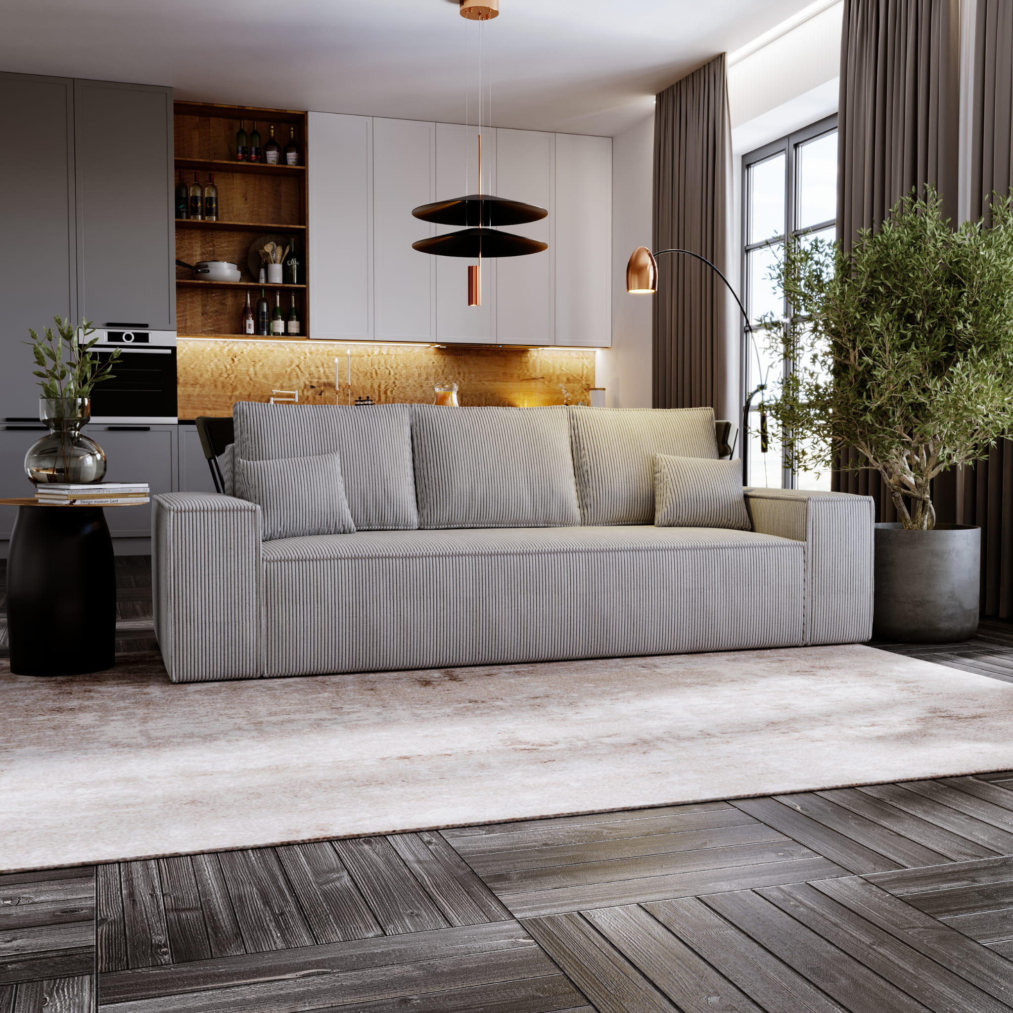 ✅ Mebel wolnostojący - narożnik wykonany jest w całości z tkaniny co sprawia, że może stać na środku pokoju