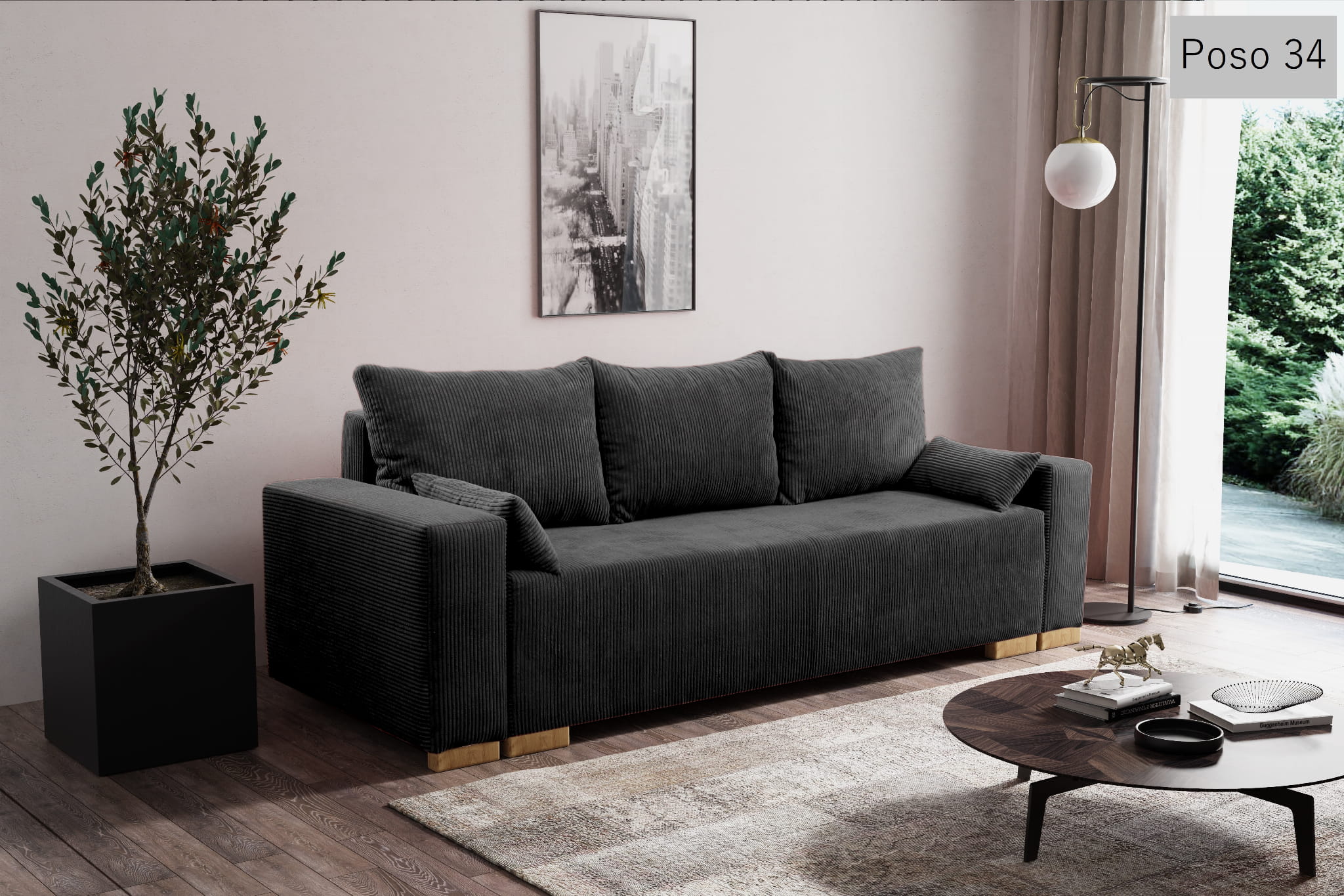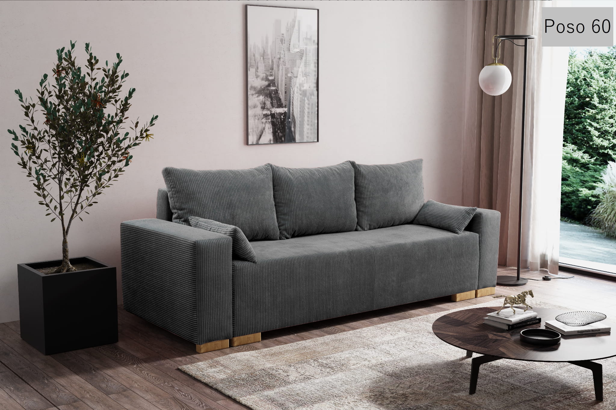 POSO sztruks obiciowy to tkanina o bardzo wyrazistej, prążkowanej strukturze, która jest miękka i trójwymiarowa. Ten gruby sztruks doskonale sprawdza się w roli tapicerki na obszerne sofy, siedziska, poduszki, elementy dekoracyjne, a nawet legowiska dla zwierząt. Wytrzymałość i trwałość tej tkaniny gwarantują jej długowieczność i odporność na zużycie.