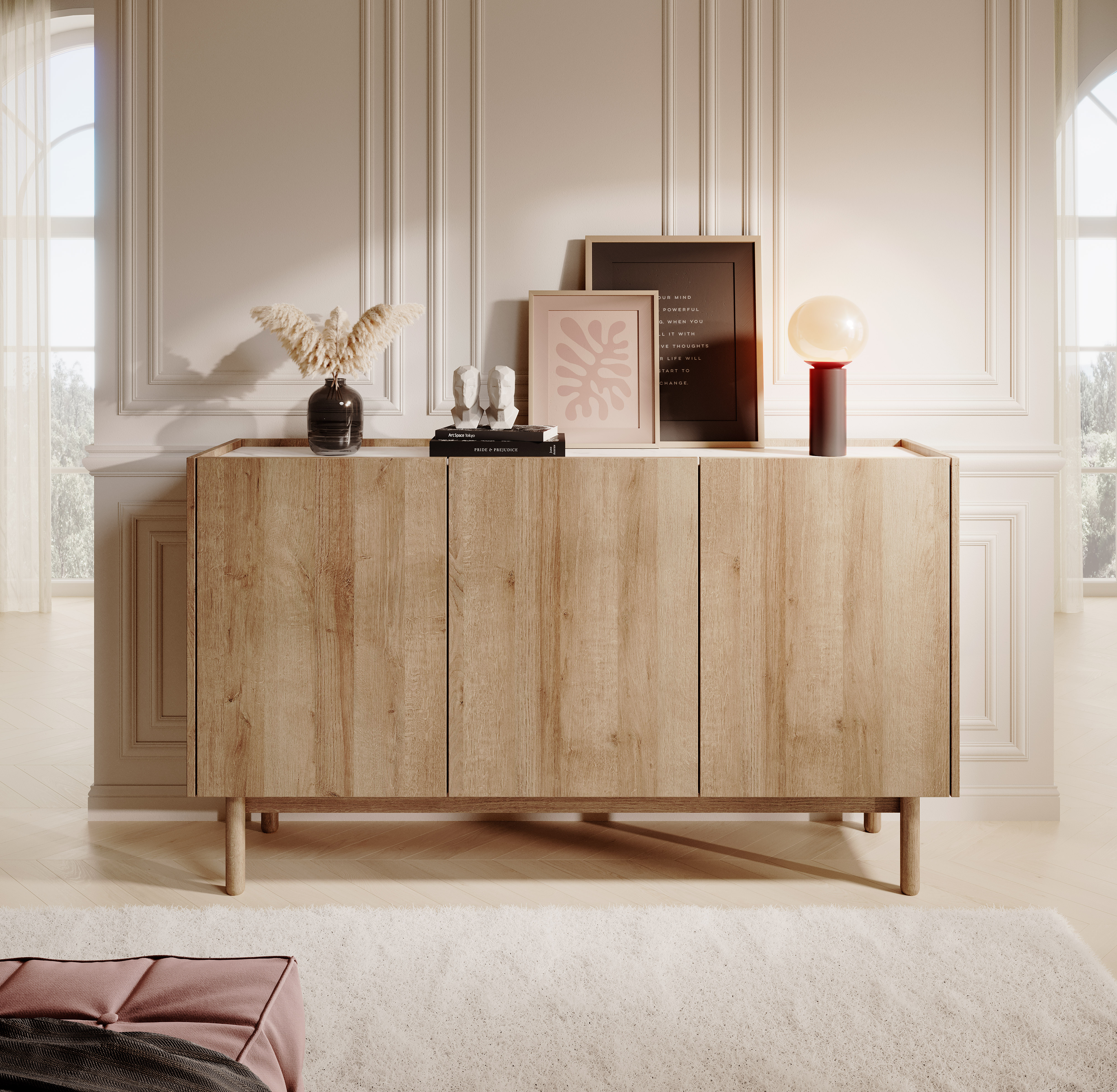 Komoda szeroka BOHO dąb riviera/ marmur bianco