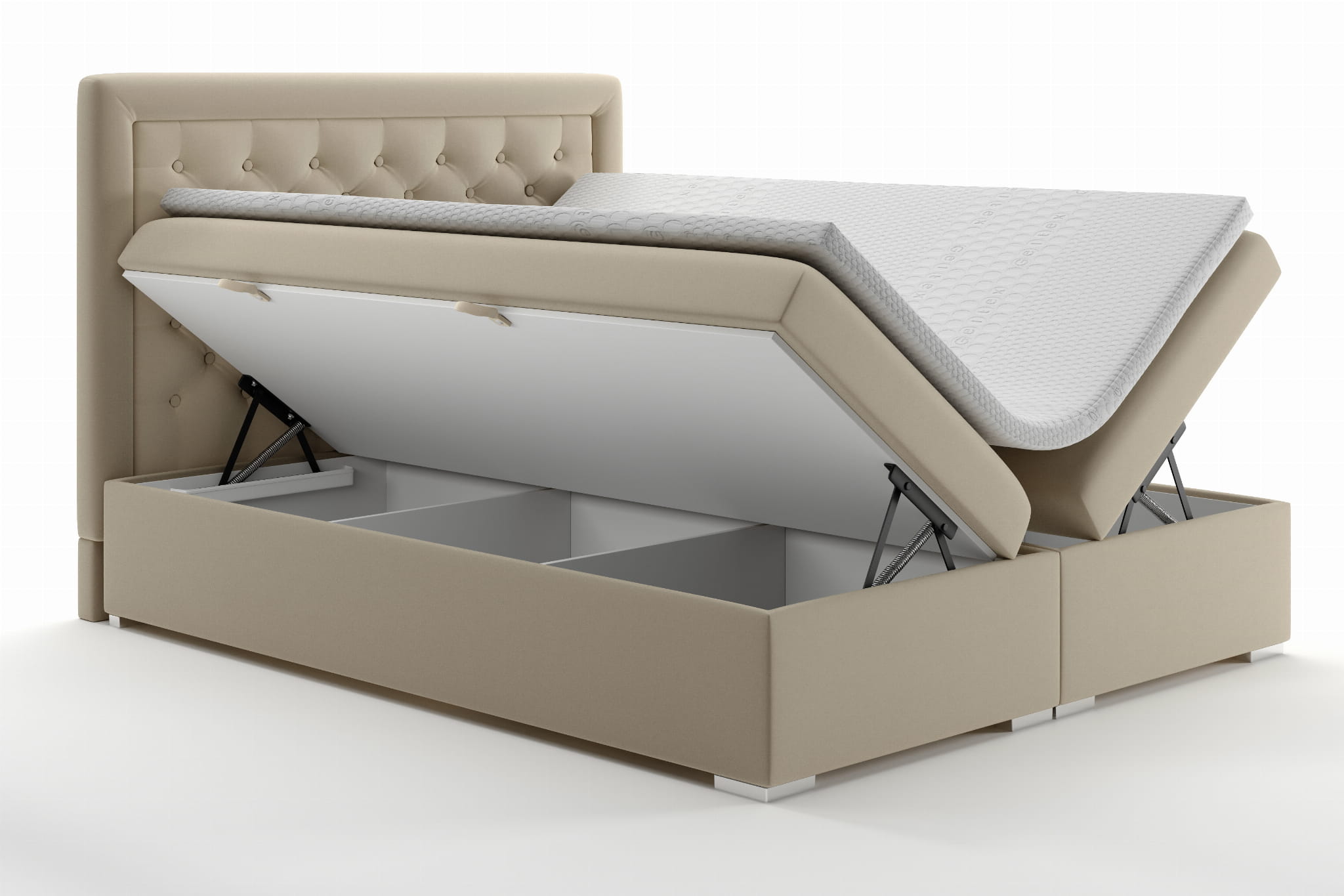 - Dwa materace - bazowy (pianka T25 + bonell, 20cm) oraz topper (pianka T21, 5cm),