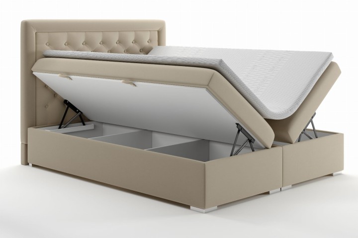 Łóżko Kontynentalne LUX wykonane zostało z wysokiej jakości produktów. Łączy w sobie prostotę z funkcjonalnością, oferując wygodę i praktyczność w eleganckiej formie. Dzięki pojemnikom na pościel zintegrowanym w podstawę łóżka, łóżko jest nie tylko stylowe, ale także praktyczne, umożliwiając łatwe przechowywanie dodatkowej pościeli czy sezonowych ubrań, co czyni go idealnym rozwiązaniem dla tych, którzy cenią porządek i estetykę w swojej sypialni.
