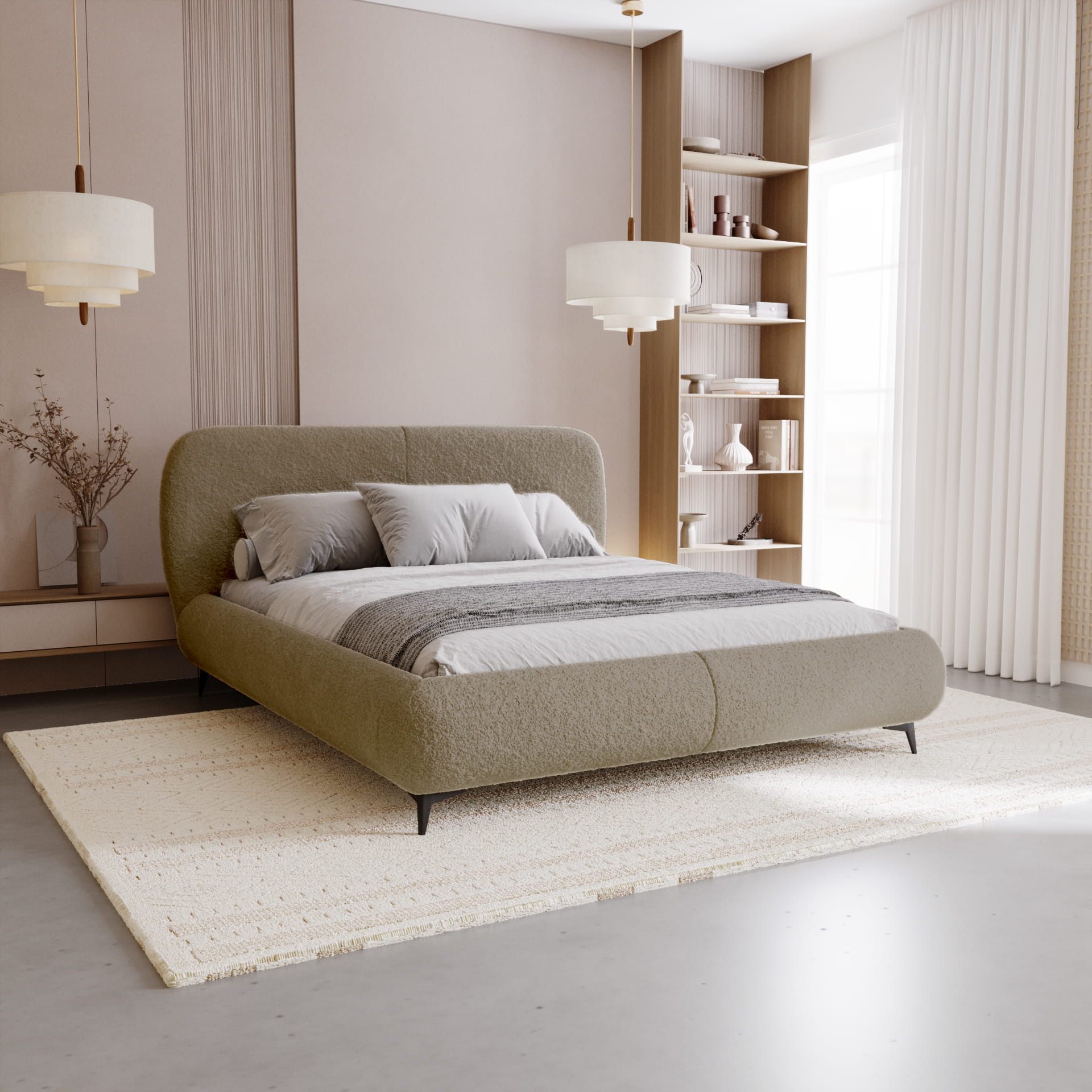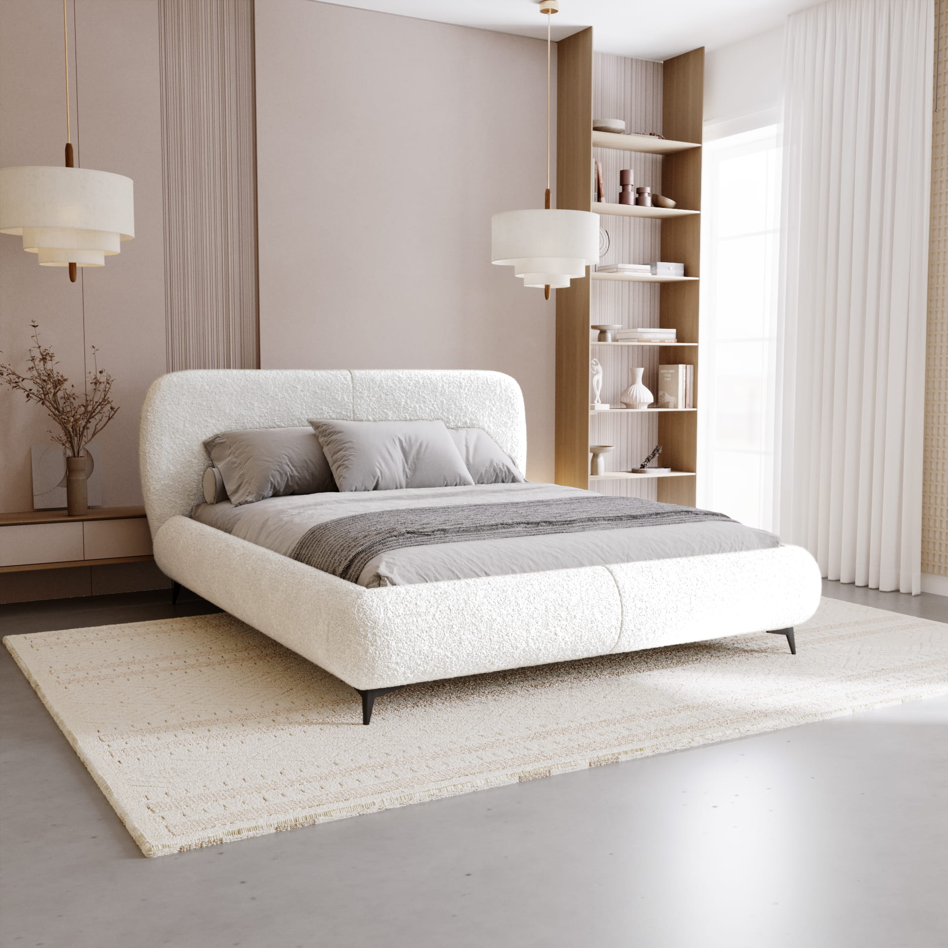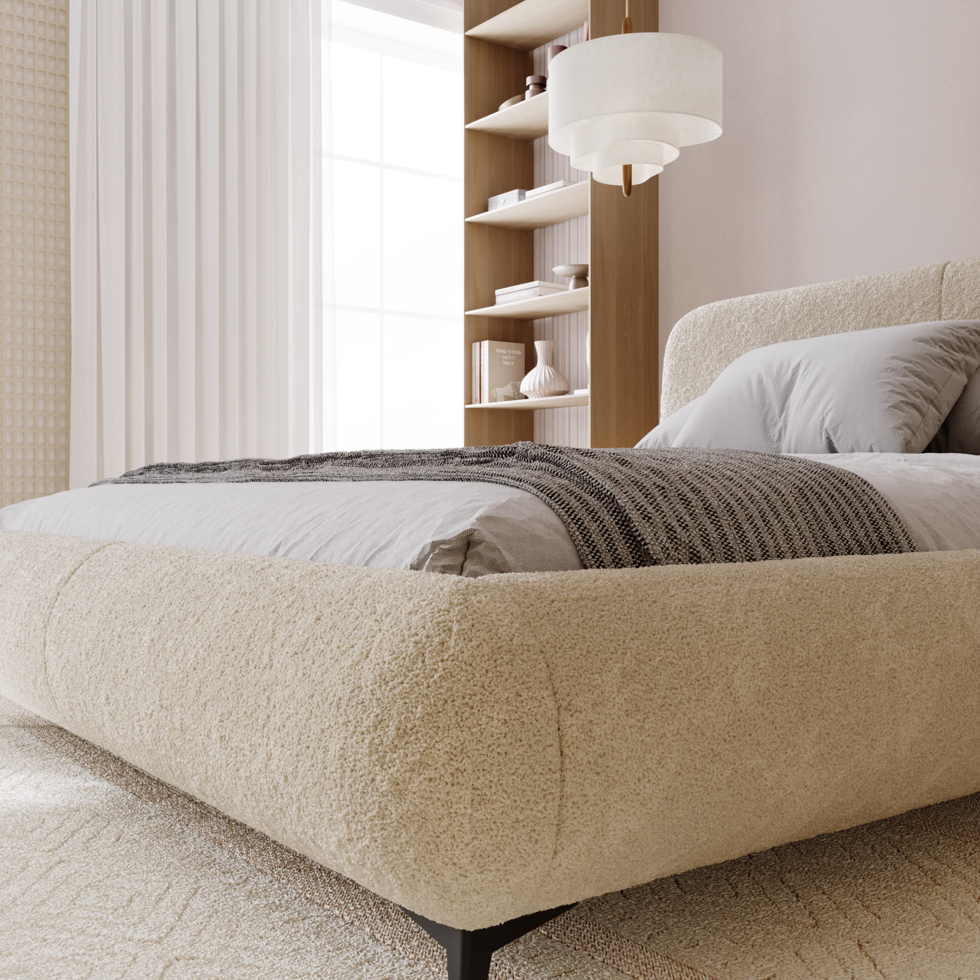 Łóżko tapicerowane AMORE do sypialni boucle 140, 160,180,200 x 200 cm
