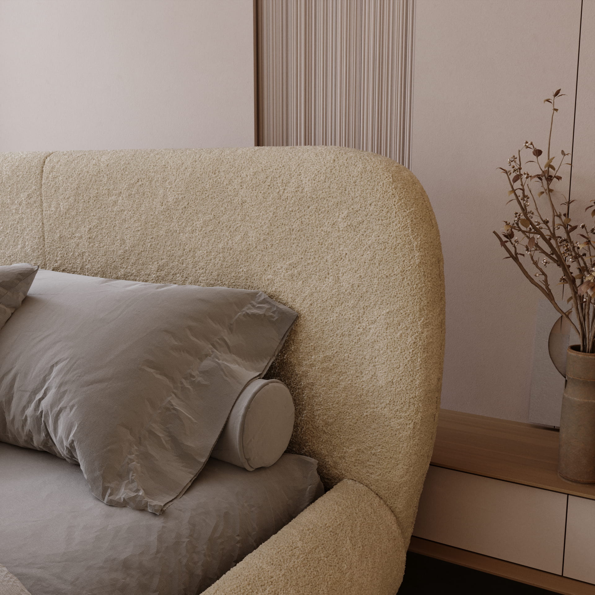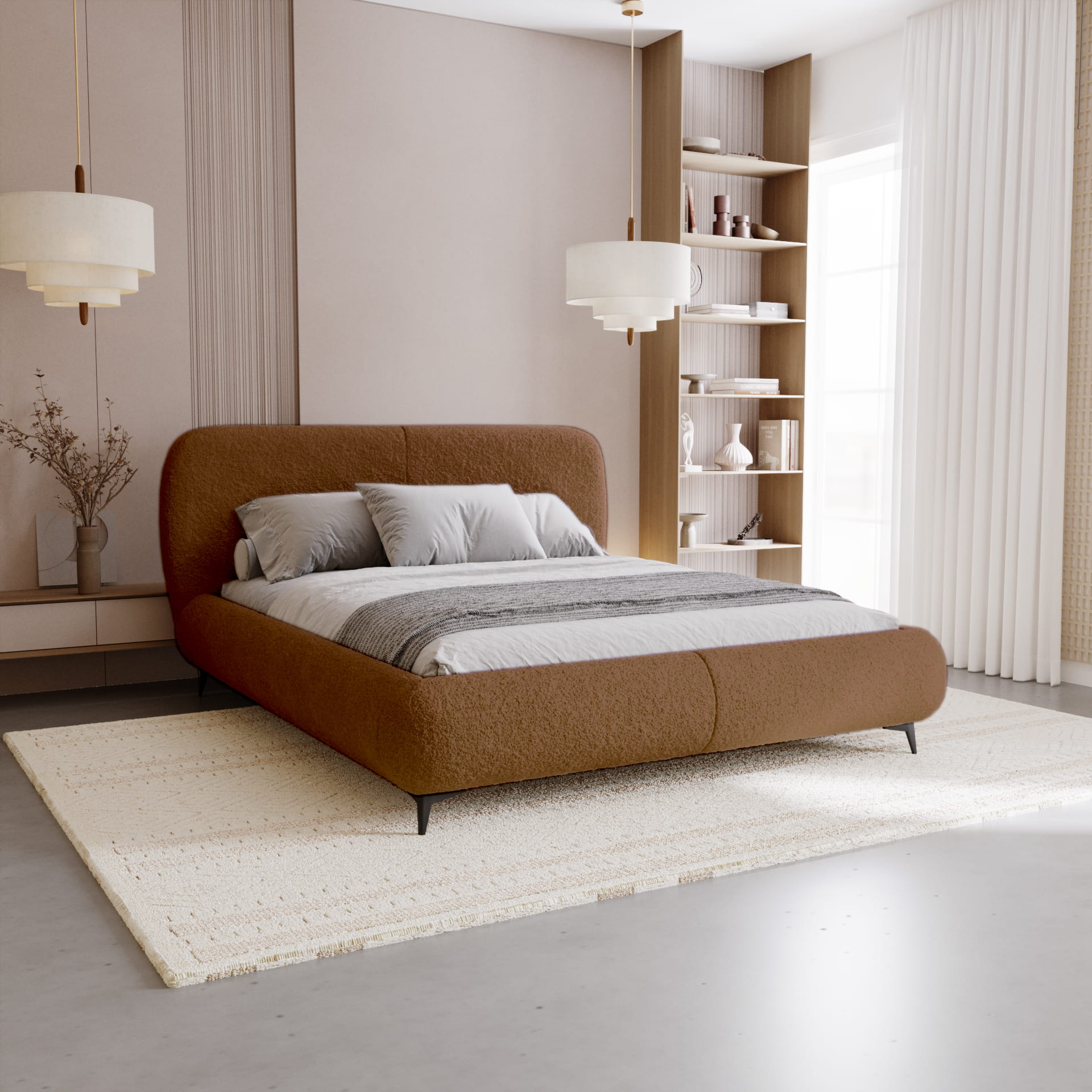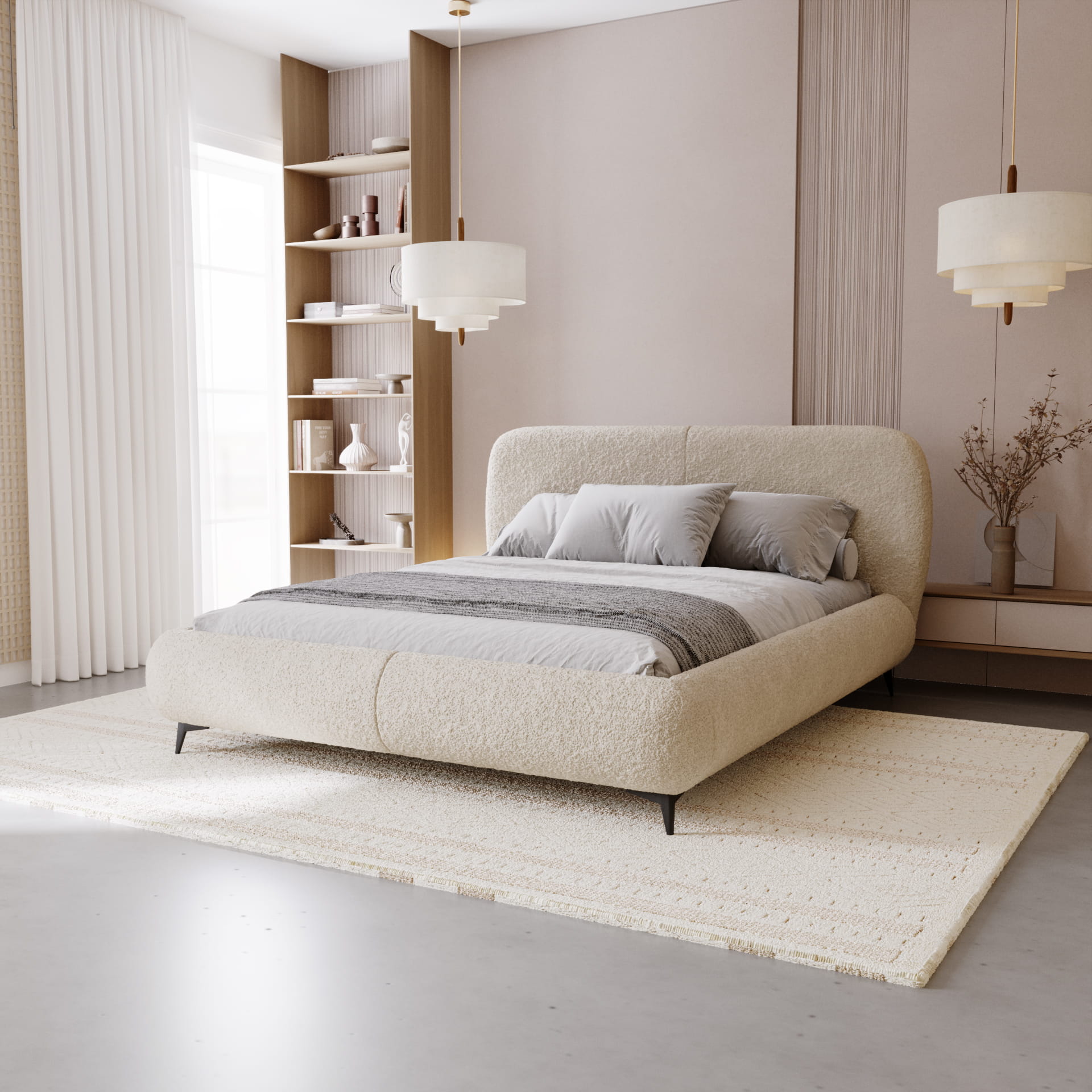 Łóżko tapicerowane AMORE do sypialni boucle 140, 160,180,200 x 200 cm