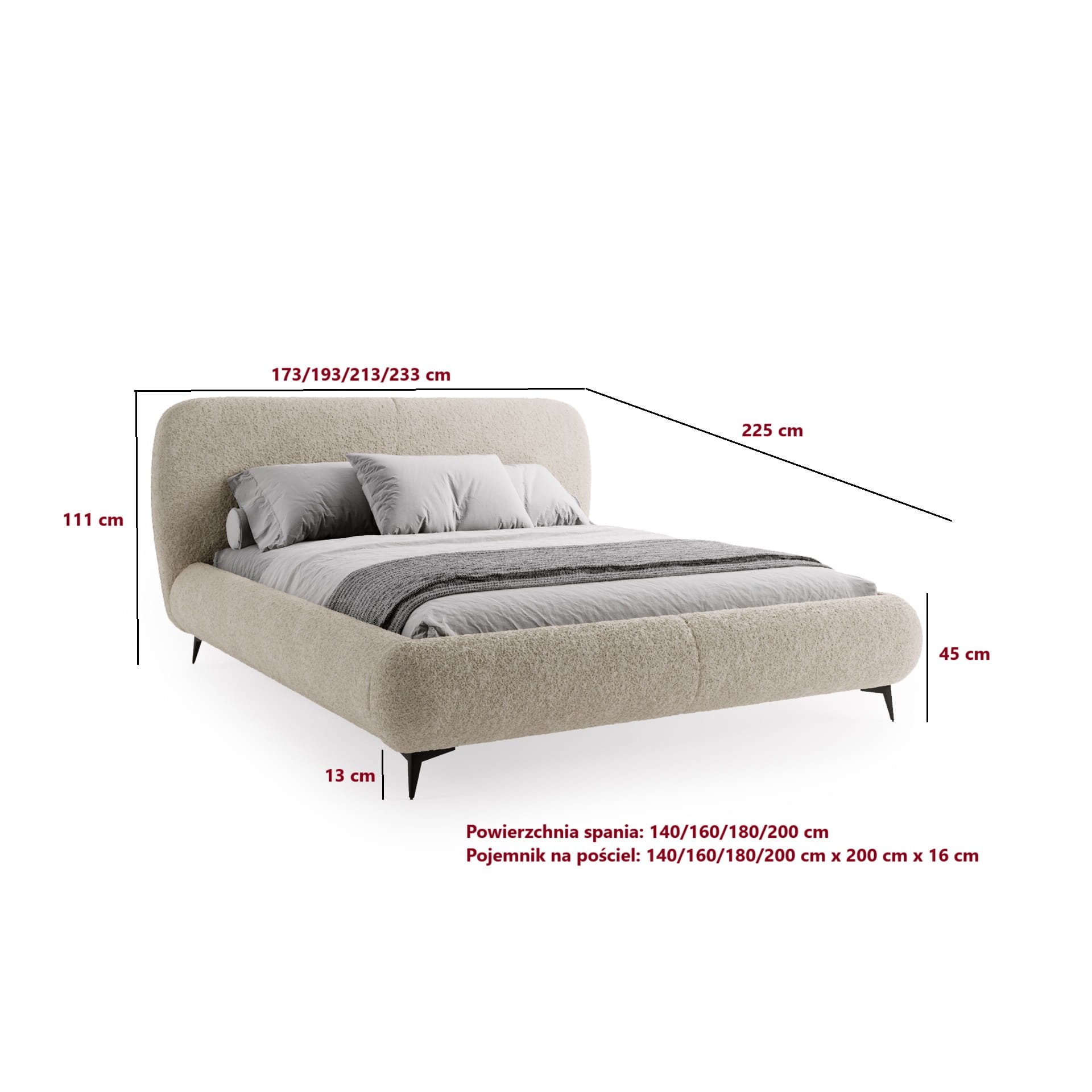 ✅ Wielkość dostosowana pod materac: 140/200, 160/200, 180/200, 200/200.