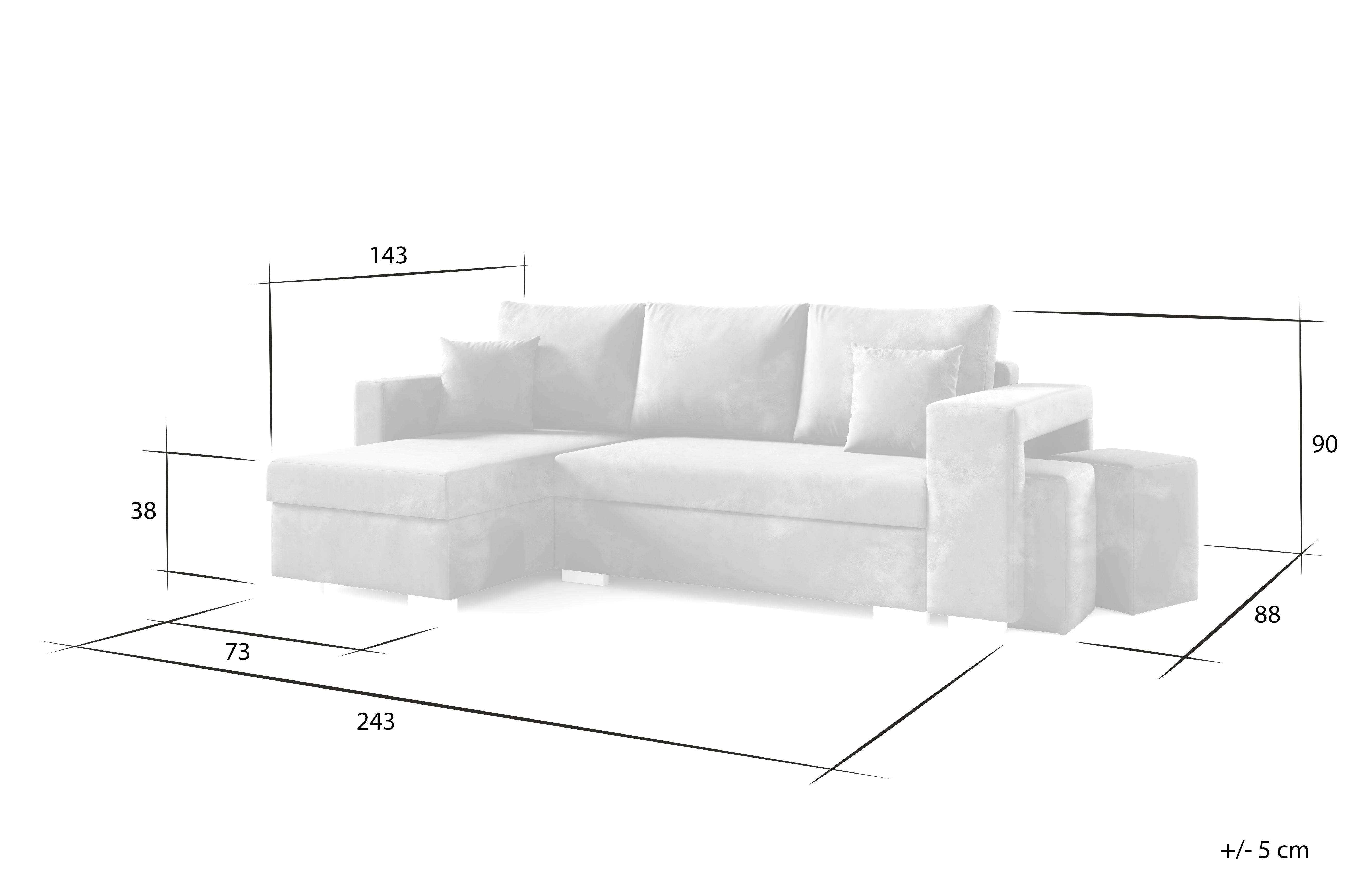 - Funkcja spania (198cm x 126cm) + poduszki w zestawie,