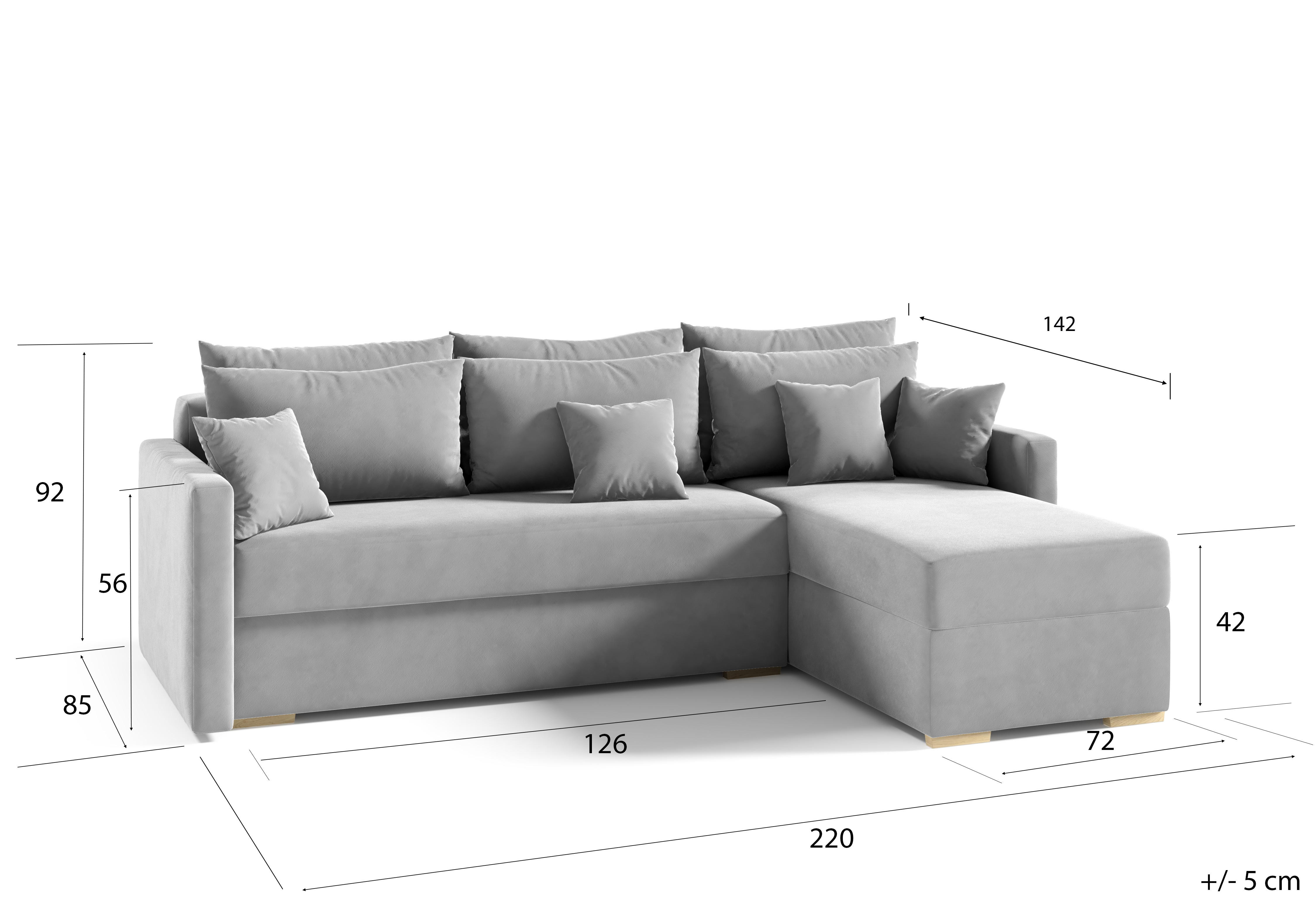 - Funkcja spania (198cm x 126cm) + poduszki w zestawie,