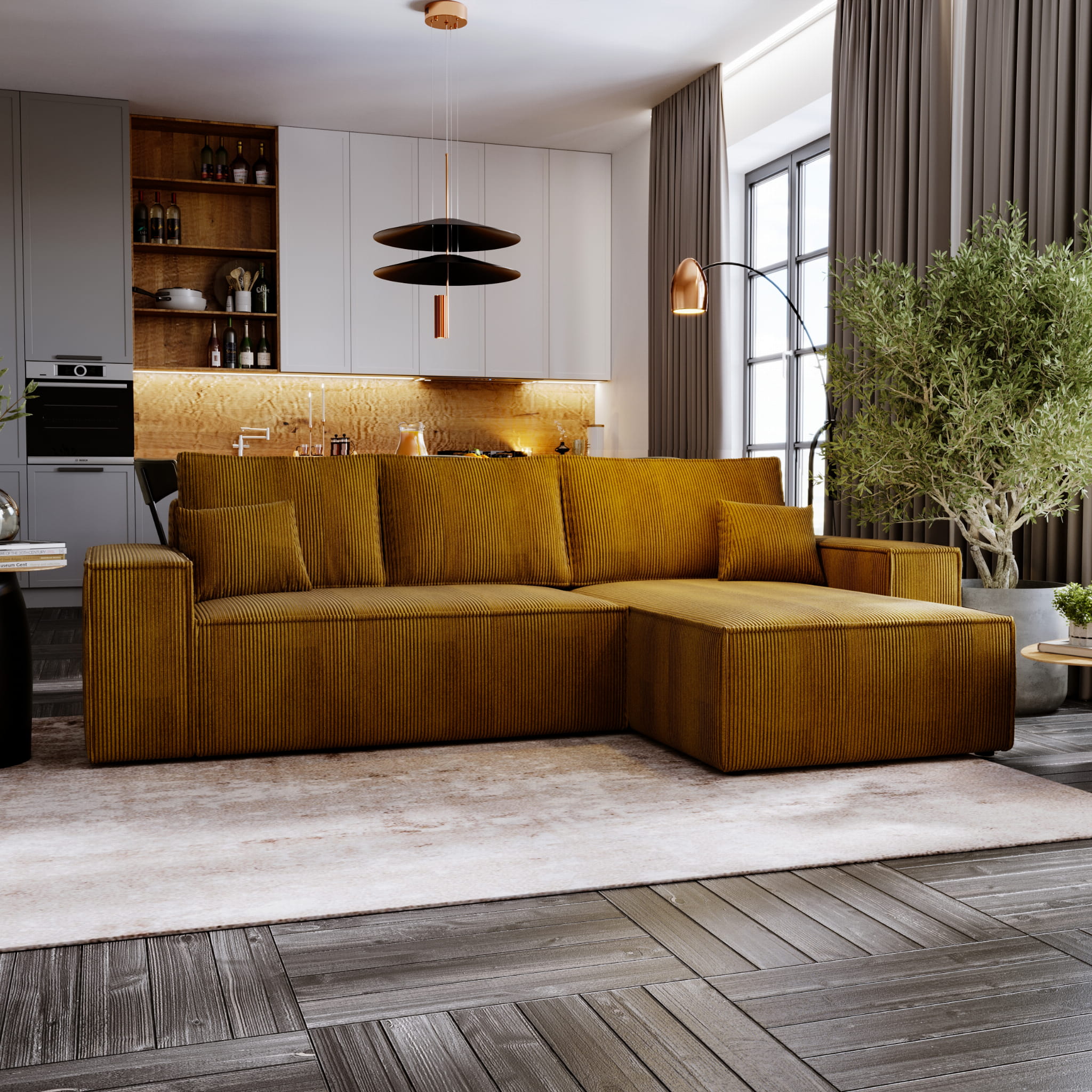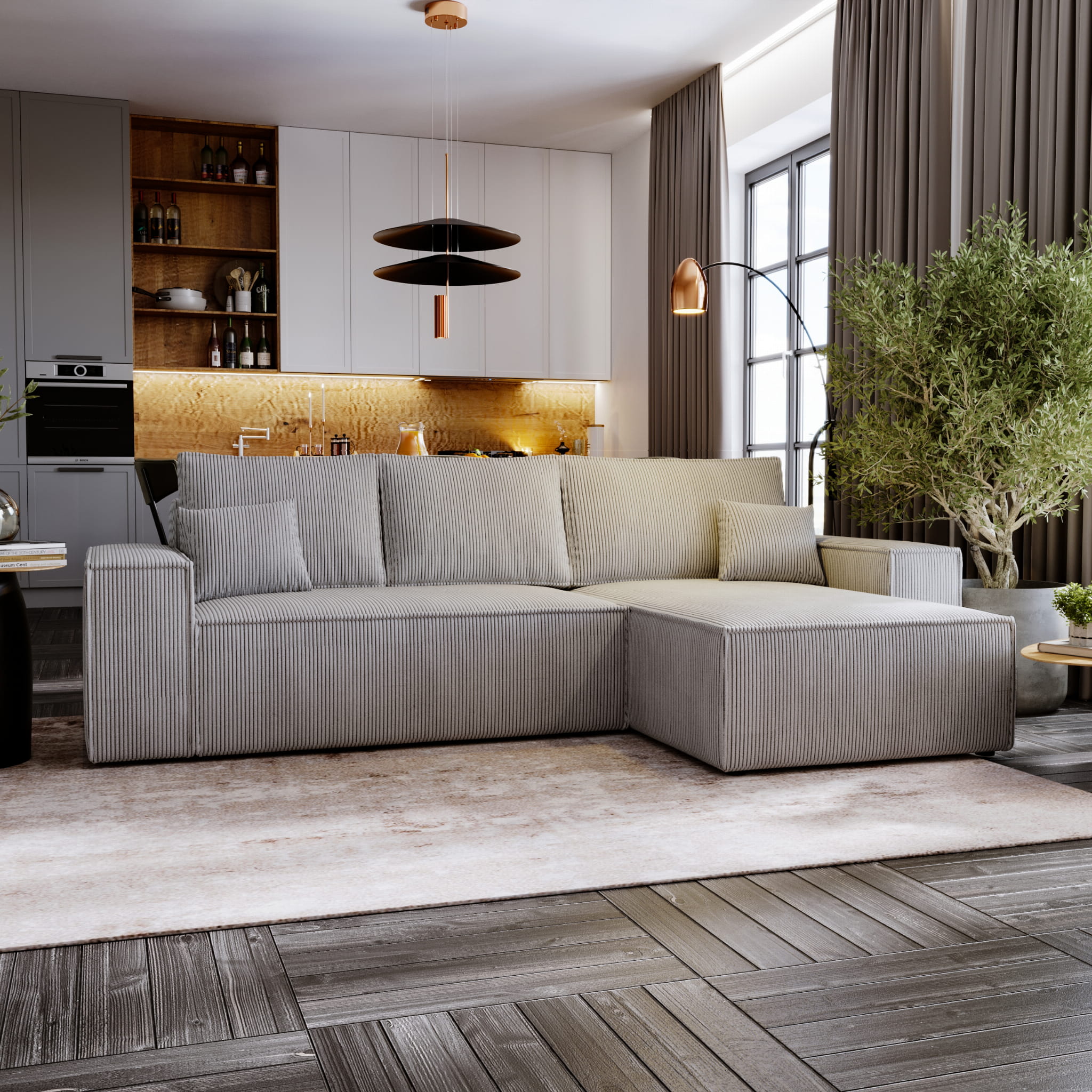 ✅ Mebel wolnostojący - narożnik wykonany jest w całości z tkaniny co sprawia, że może stać na środku pokoju