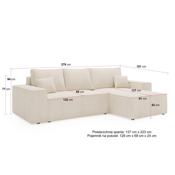 Oferujemy nowoczesny narożnik LAGA w kształcie litery " L" z funkcją spania