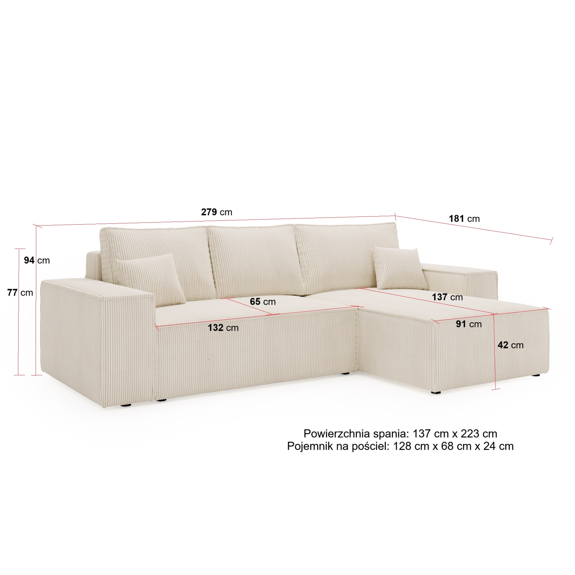 - Szerokość całkowita: 279 cm