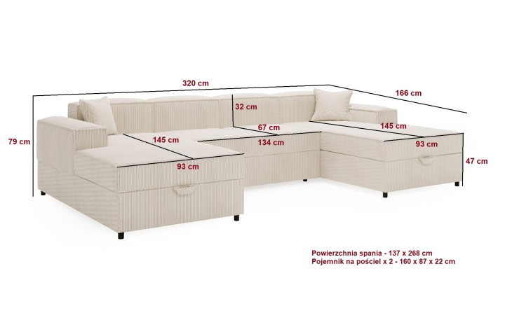 Oferujemy nowoczesny narożnik SANTIAGO w kształcie litery "U "z funkcją spania