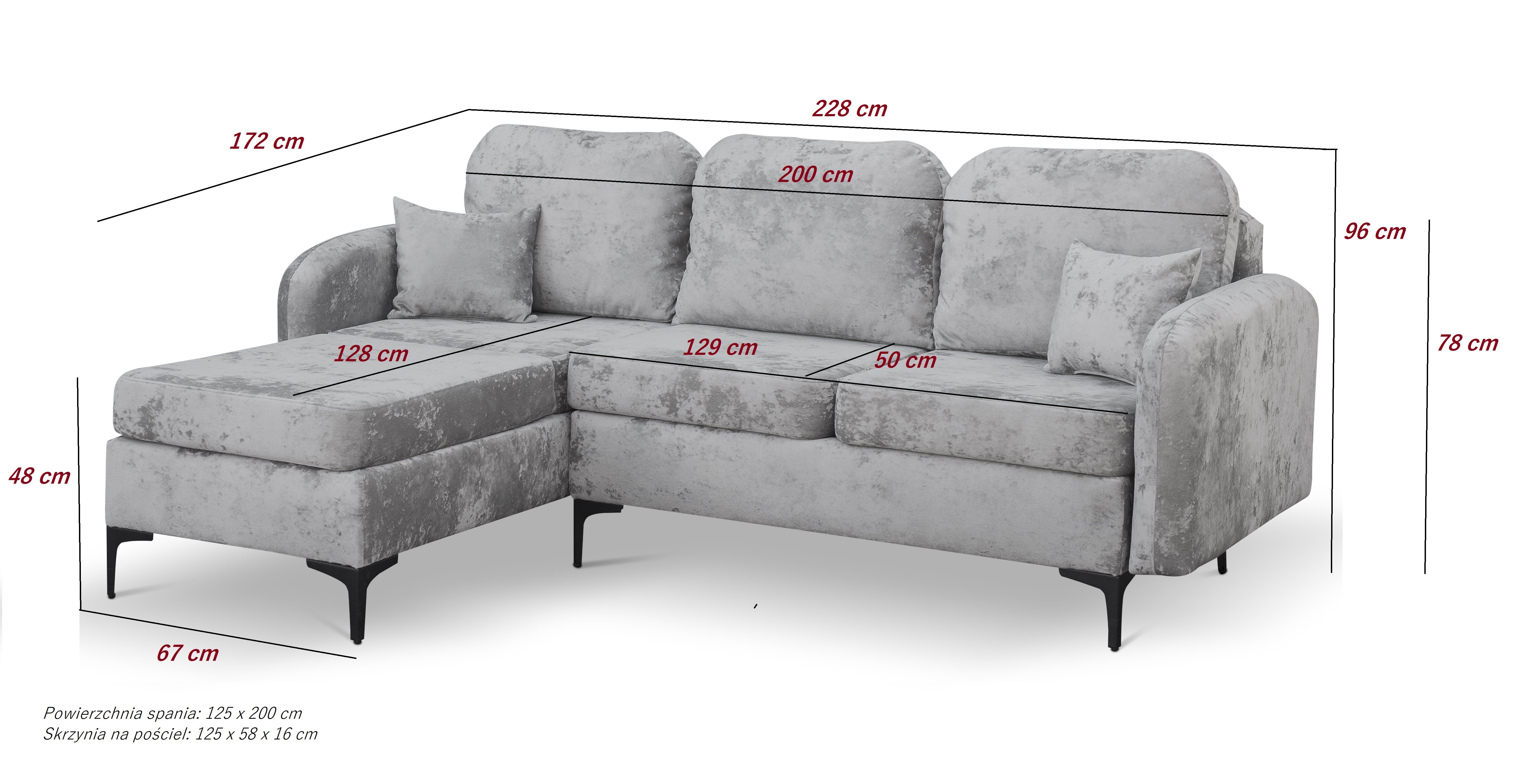 Tolerancja wymiarów mebli tapicerowanych wynosi +/- 4cm.