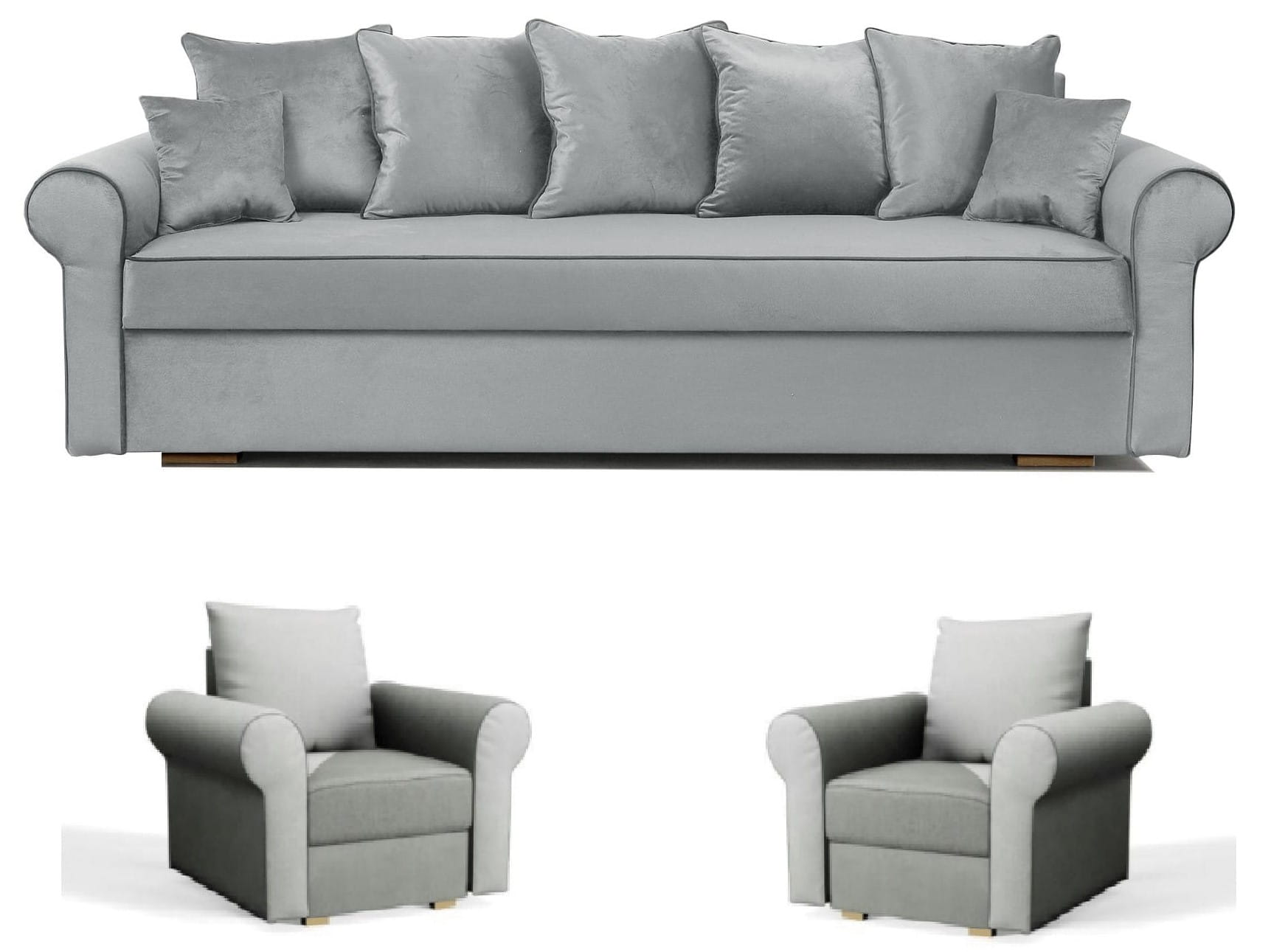 Skład zestawu: kanapa 3-osobowa + 2 fotele.