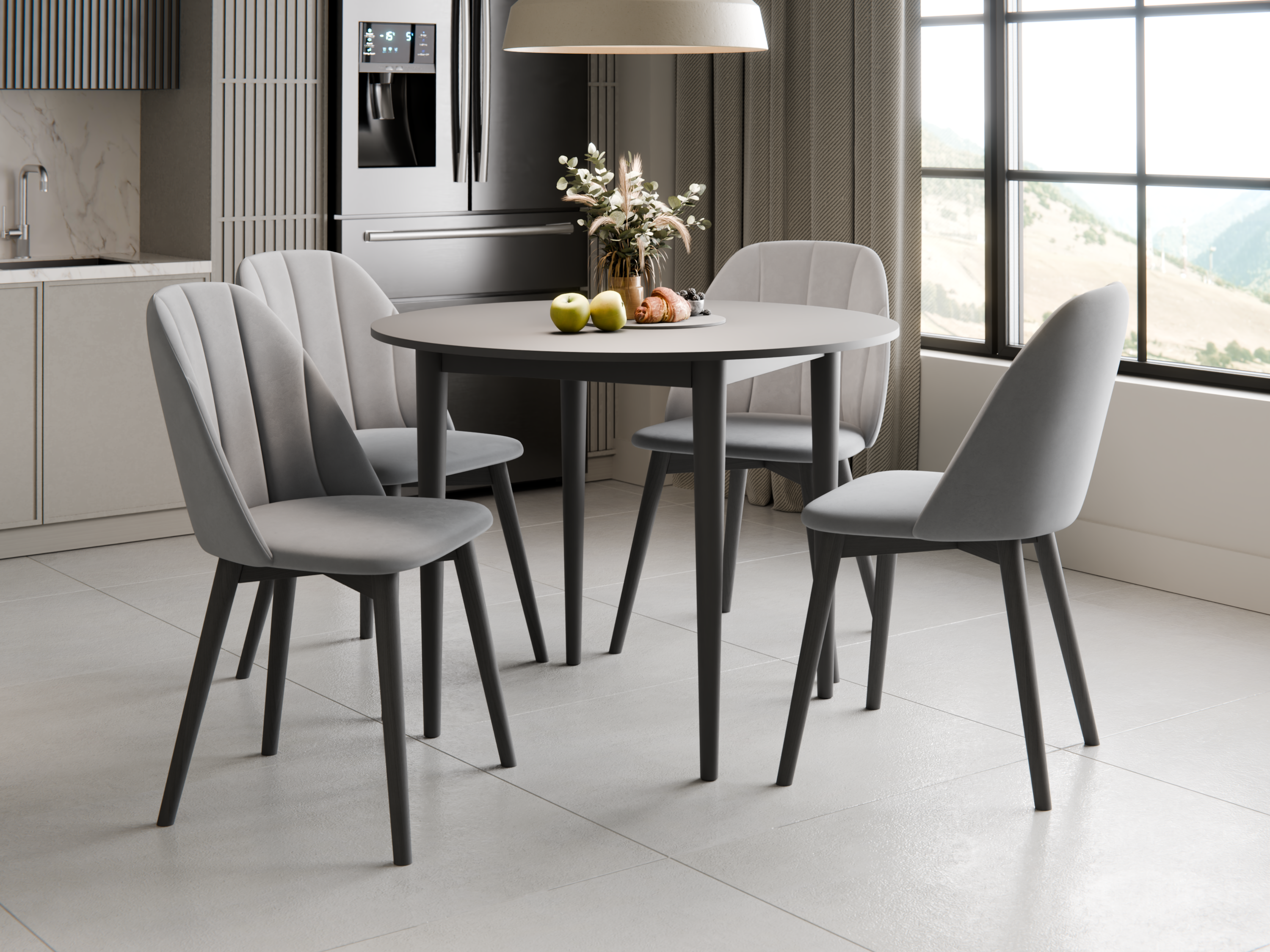 Zestaw składa się z stołu oraz wygodnych krzeseł: