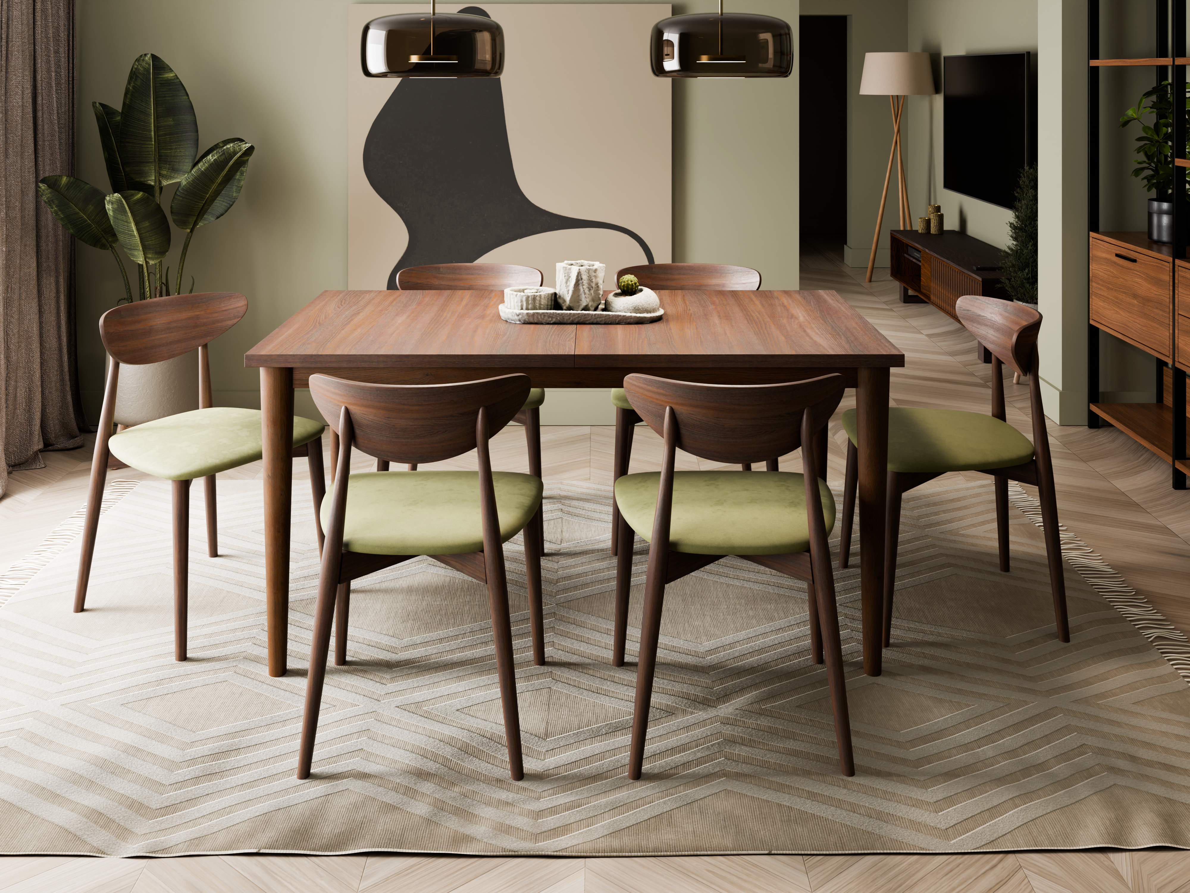 Zestaw składa się z stołu oraz wygodnych krzeseł: