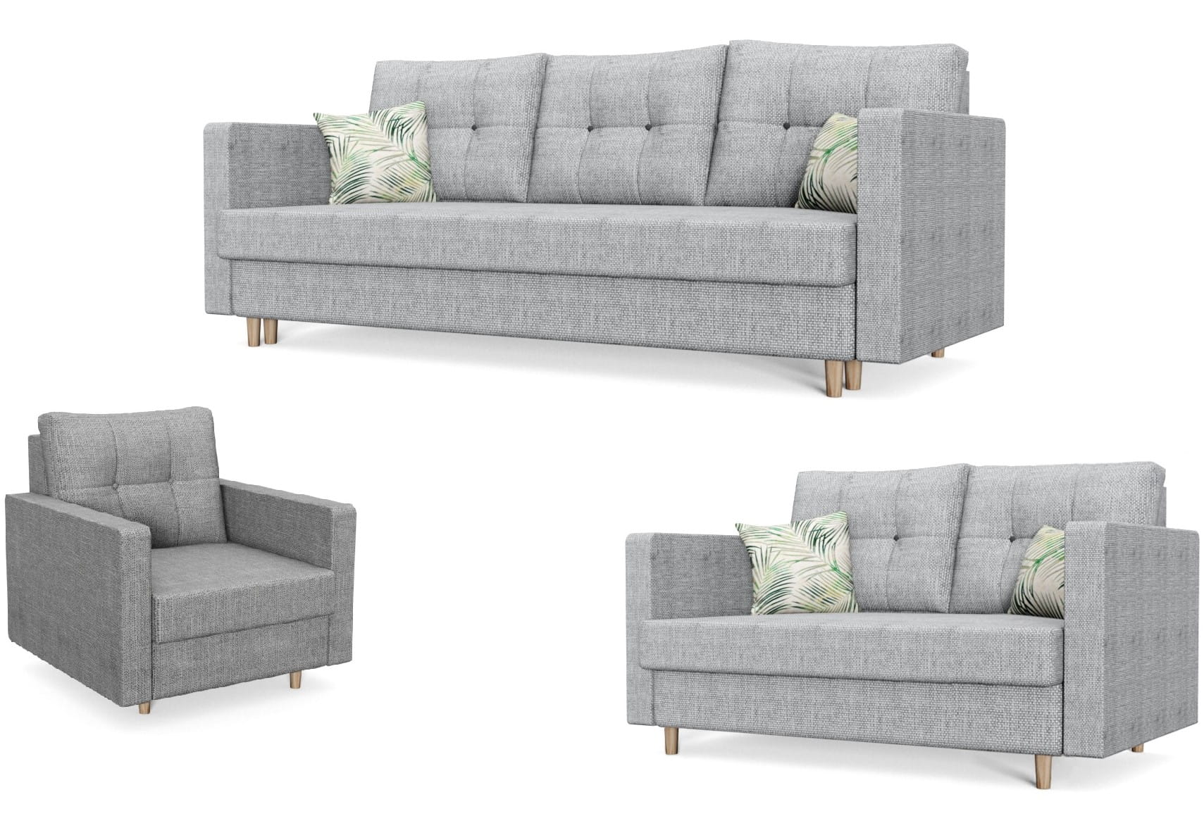 Skład zestawu: kanapa 3-osobowa + kanapa 2 os. (nierozkładana) + fotel