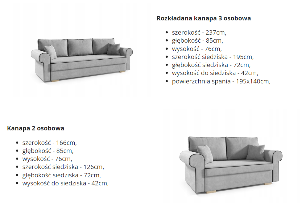 Skład zestawu: kanapa 3-osobowa + kanapa 2 os. (nierozkładana)