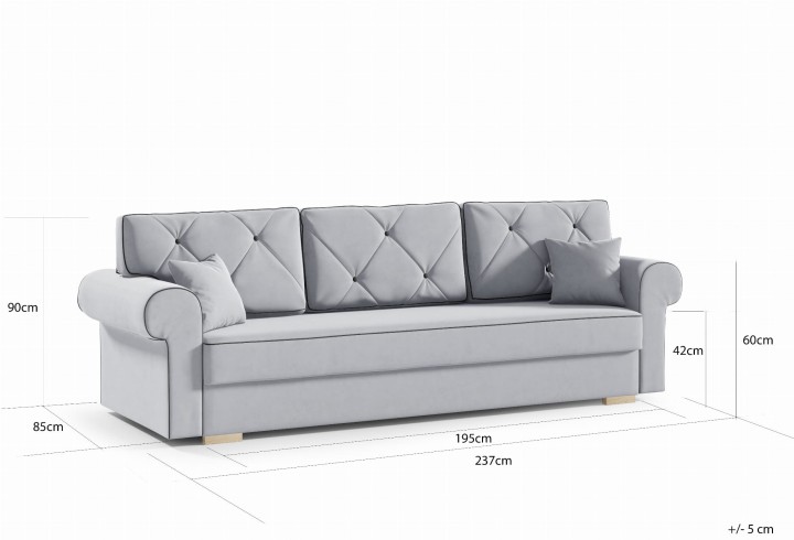 - Funkcja spania (195cm x 140cm) + poduszki w zestawie,