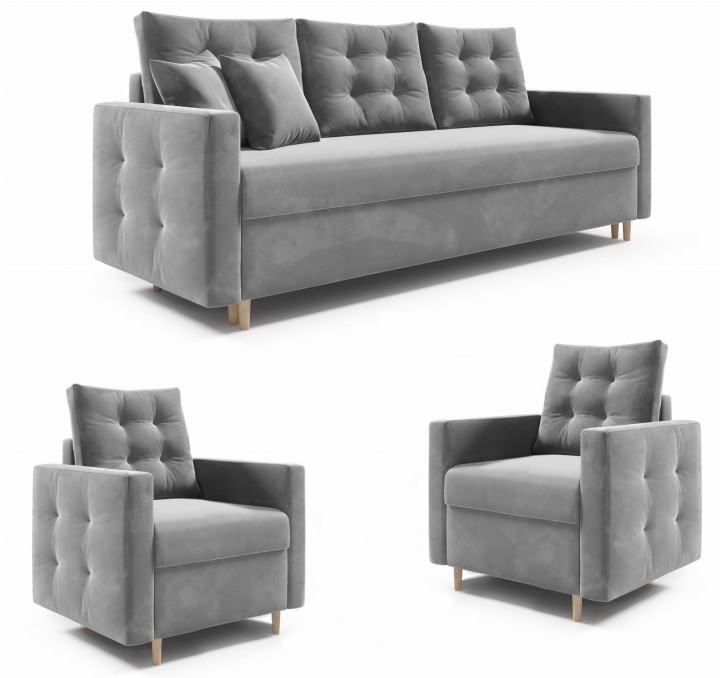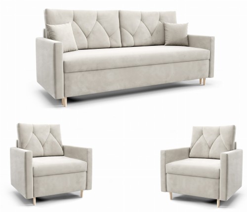 Skład zestawu: kanapa 3-osobowa + 2 fotele